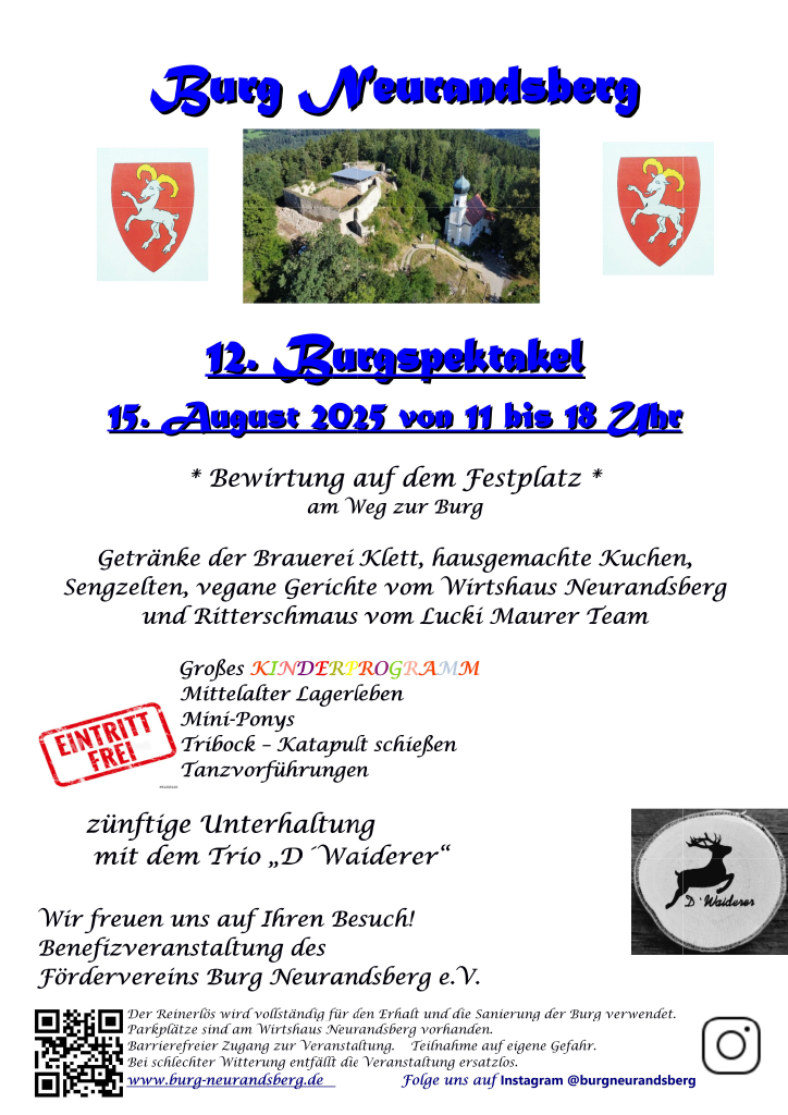 Auch in diesem Jahr findet wieder unser beliebtes Burgspektakel statt, wie immer am 15. August 2025.