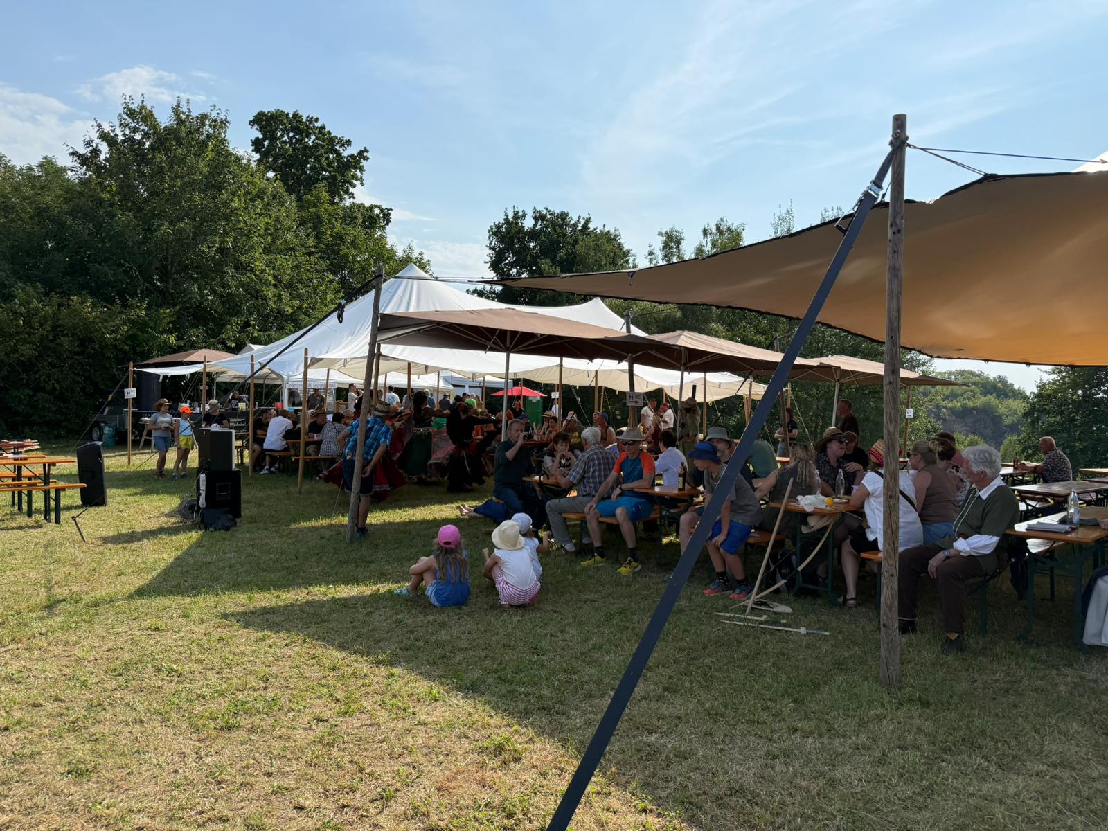 Auf dem Festplatz am Weg zur Burg konnten sich die Besucher unter zwei großen mittelalterlichen Zeltdächern im Schatten niederlassen. Fürs leibliche Wohl sorgten die Speisen vom Lucki-Maurer-Team, Wirtshaus Neurandsberg, Metzger Landstorfer, Biogartenbau Ettl und der Bäckerei Eidenschink. Natürlich gabs auch süffige Biere von der Brauerei Klett und alkoholfreie Durstlöscher.