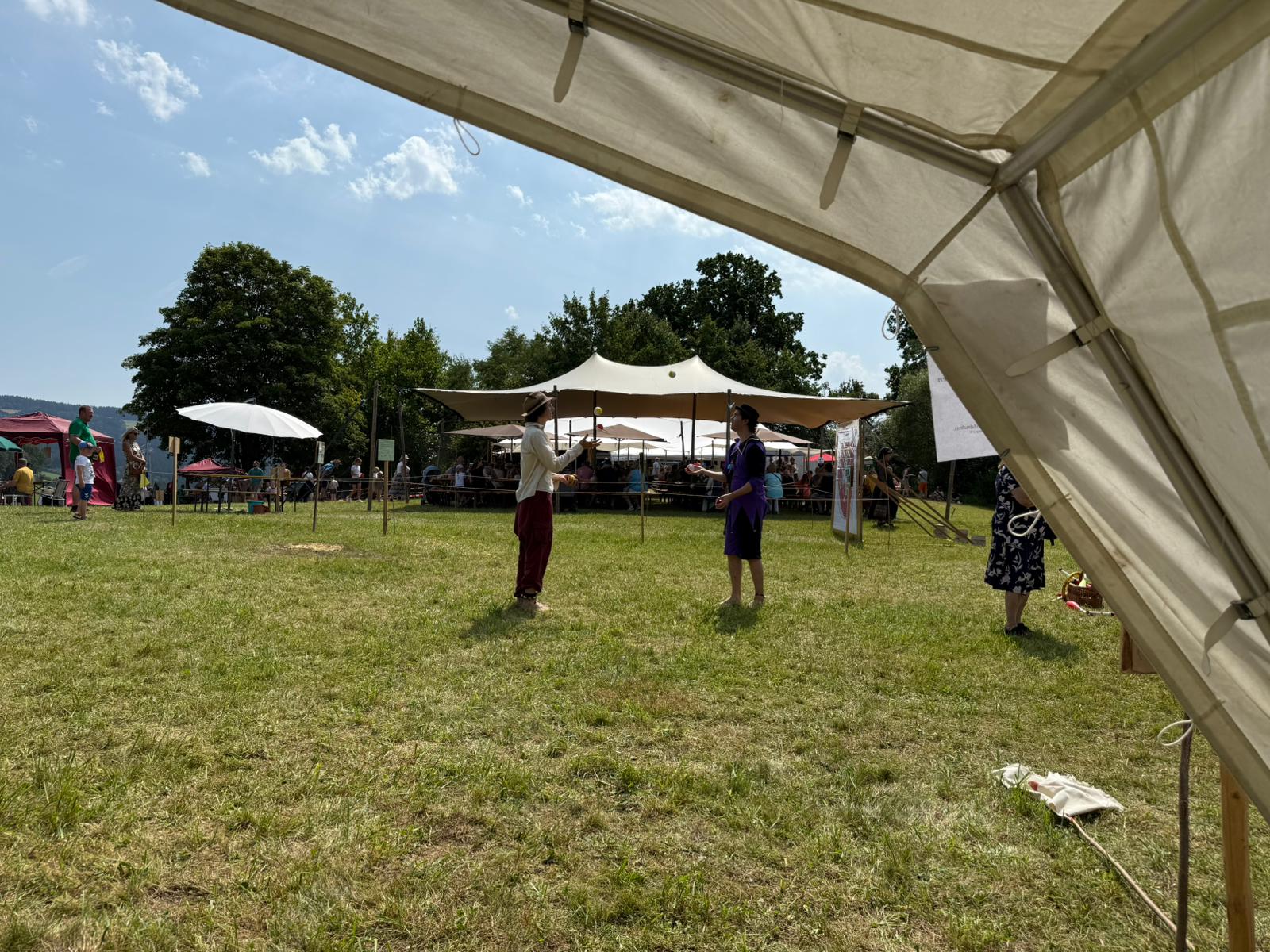 Sogar ein Hypnotiseur hatte sich eingefunden und versetzte die Besucher in Staunen. Ebenso wie Benedikt Piller und ein Freund, die wahre Jonglagekünstler sind. Viel gebastelt wurde ebenfalls und Kinderschminken durfte nicht fehlen. Kranzerl, Schilde und Schwerter fanden neue Besitzer unter den Kindern.