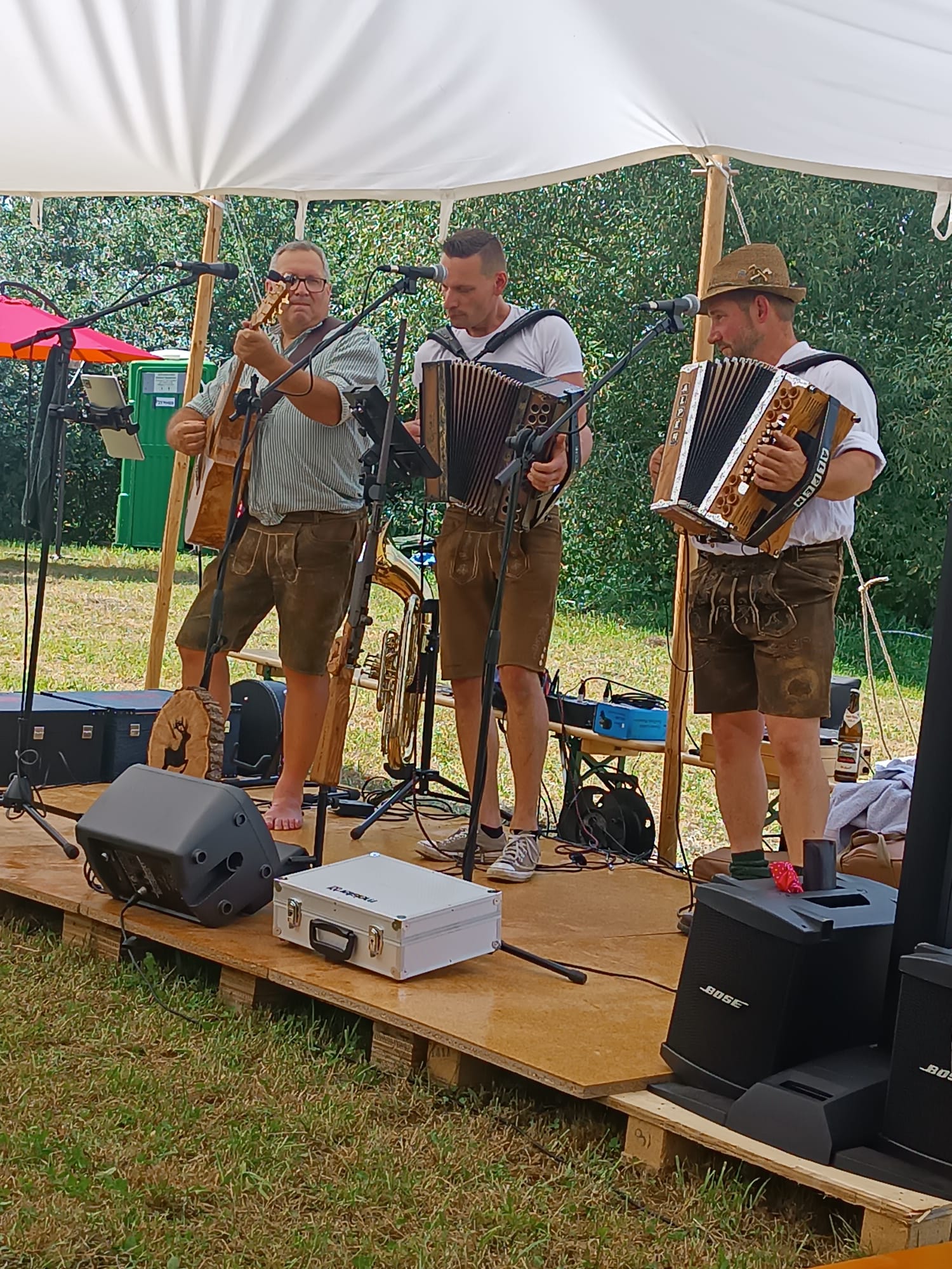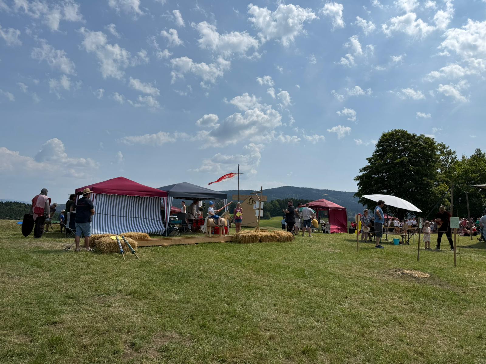 Das junge Musikerinnentrio "D´ Woidbixxn" sorgte den Nachmittag über für gute musikalische Unterhalten. Wie jedes Jahr wurden die Gäste vom versierten Team von Lucki Maurer verköstigt und die Neurandsburger, Ritterbraten und Burgschuberl fanden großen Anklang. Selbstverständlich wurden auch wieder die guten Sengzelten angeboten. Für optisch und geschmacklich sehr ansprechende Brote sorgten die Tomaten und Radi von Bio-Gartenbau Ettl. Reissenden Absatz fanden die hausgemachten Torten und Kuchen der Vereinsmitglieder und bei Kaffee und Kuchen, einem guten Bier der Brauerei Klett oder anderem Getränk konnte man den Blick über den Bayerwald schweifen lassen.