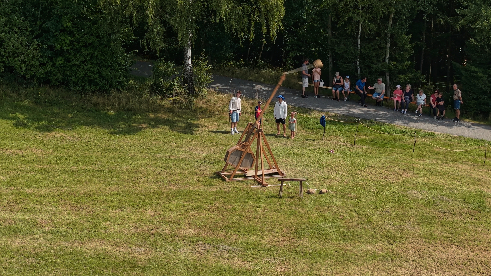 Für große Aha-Momente sorgten die Tribock-Katapulte von Benedikt Weinzierl. Hier konnten groß und klein einmal die Belagerungsmaschinen des Mittelalters bedienen und über die Weitwürfe staunen.