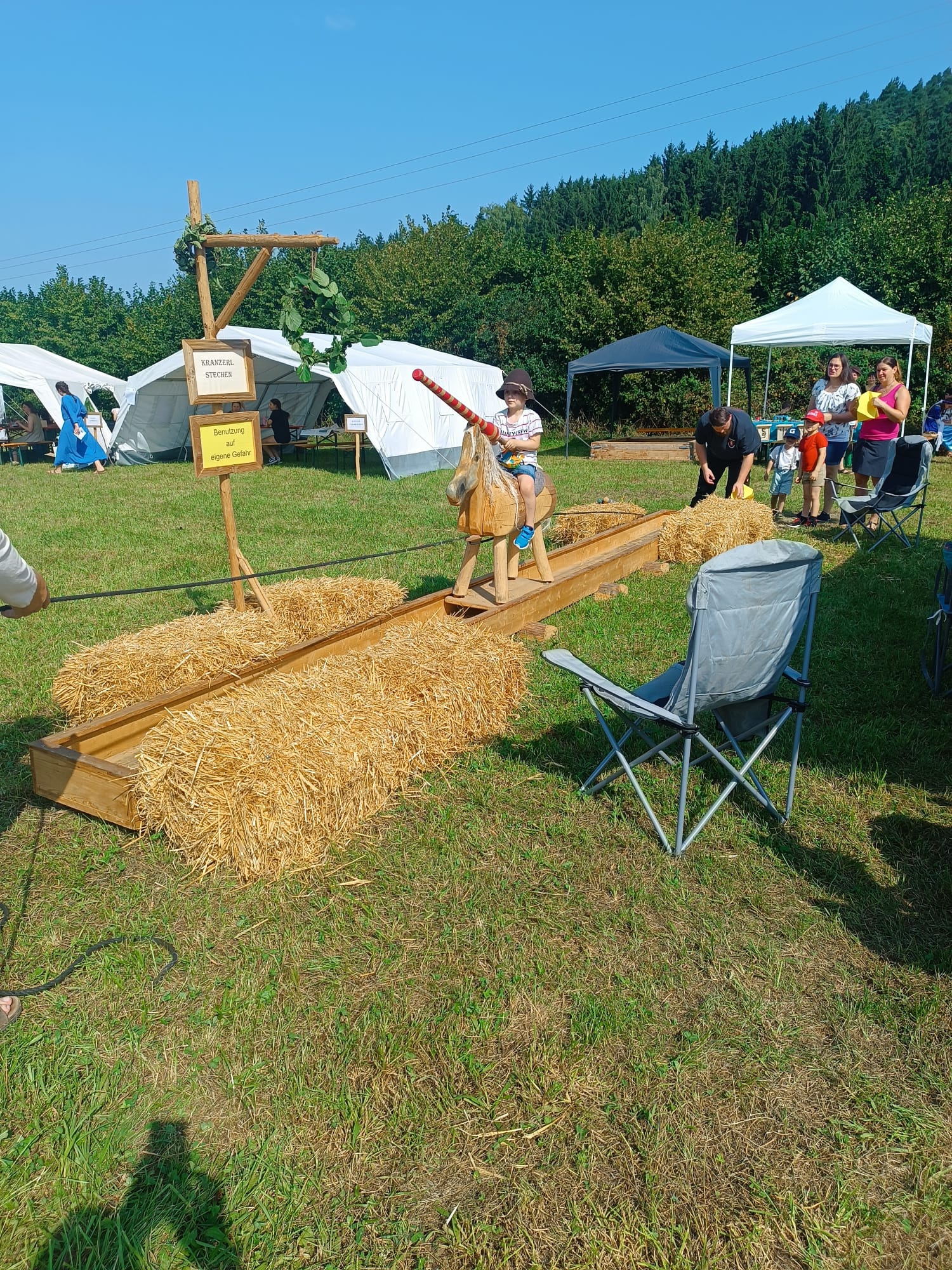 Das große Kinderprogramm zog wieder viele Besucher an und die Kinder konnten sich z.B. im Bogenschießen, Dosenwerfen, Bockstechen uvm. beweisen. Ein Highlight waren in diesem Jahr die Triböcke von Benedikt Weinzierl, der mit seiner Walschutzmarke Kaskelot für den guten Zweck die Katapulte aufgebaut hatte. Hier konnte jeder sein Glück versuchen und es gab großes Staunen über diese Wurfmaschinen.