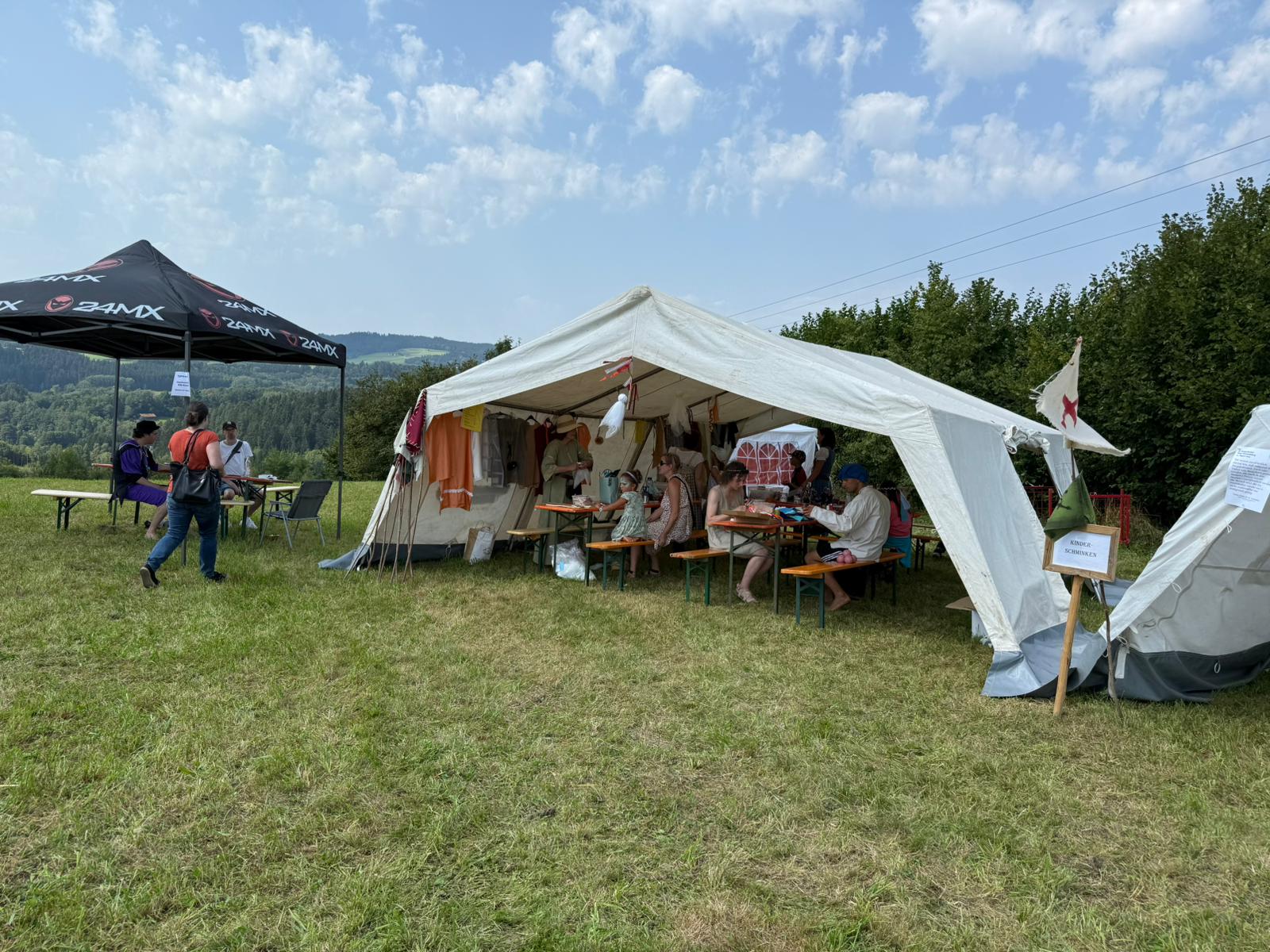 Auf dem Festplatz am Weg zur Burg konnten sich die Besucher unter zwei großen mittelalterlichen Zeltdächern im Schatten niederlassen. Fürs leibliche Wohl sorgten die Speisen vom Lucki-Maurer-Team, Wirtshaus Neurandsberg, Metzger Landstorfer, Biogartenbau Ettl und der Bäckerei Eidenschink. Natürlich gabs auch süffige Biere von der Brauerei Klett und alkoholfreie Durstlöscher.